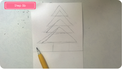 Christmas tree drawing for dummies: Draw triangles and stack them as shown above. Remember to leave a tab of around 0.5cm at the bottom!